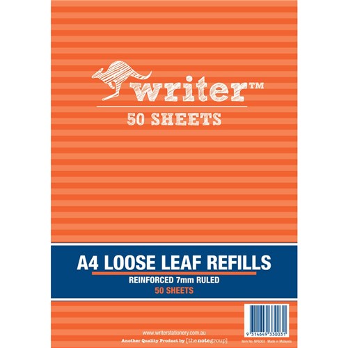 Writer Binder Refills A4 7mm Ruled Reinforced Pack of 50