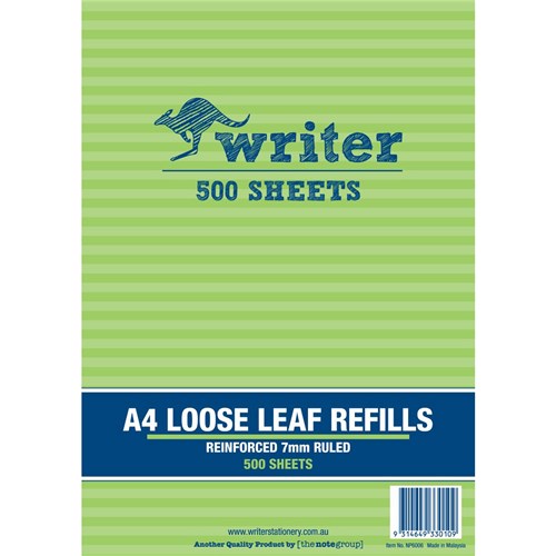 Writer Binder Refills A4 7mm Ruled Reinforced Pack of 500