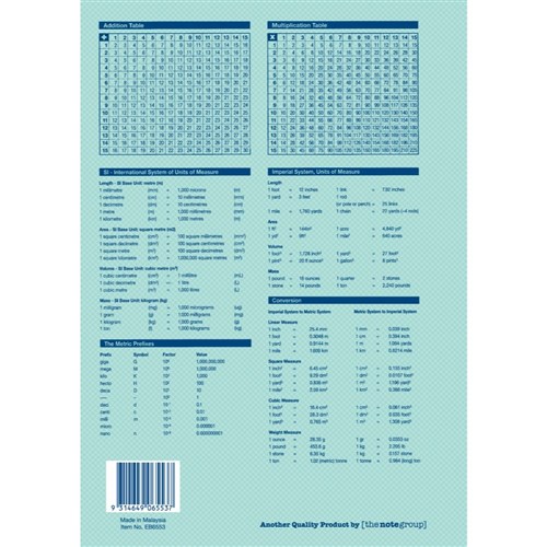 10mm grid ruled. Features heavy duty covers, high quality white 70gsm paper. Teachers reference Watermelon.