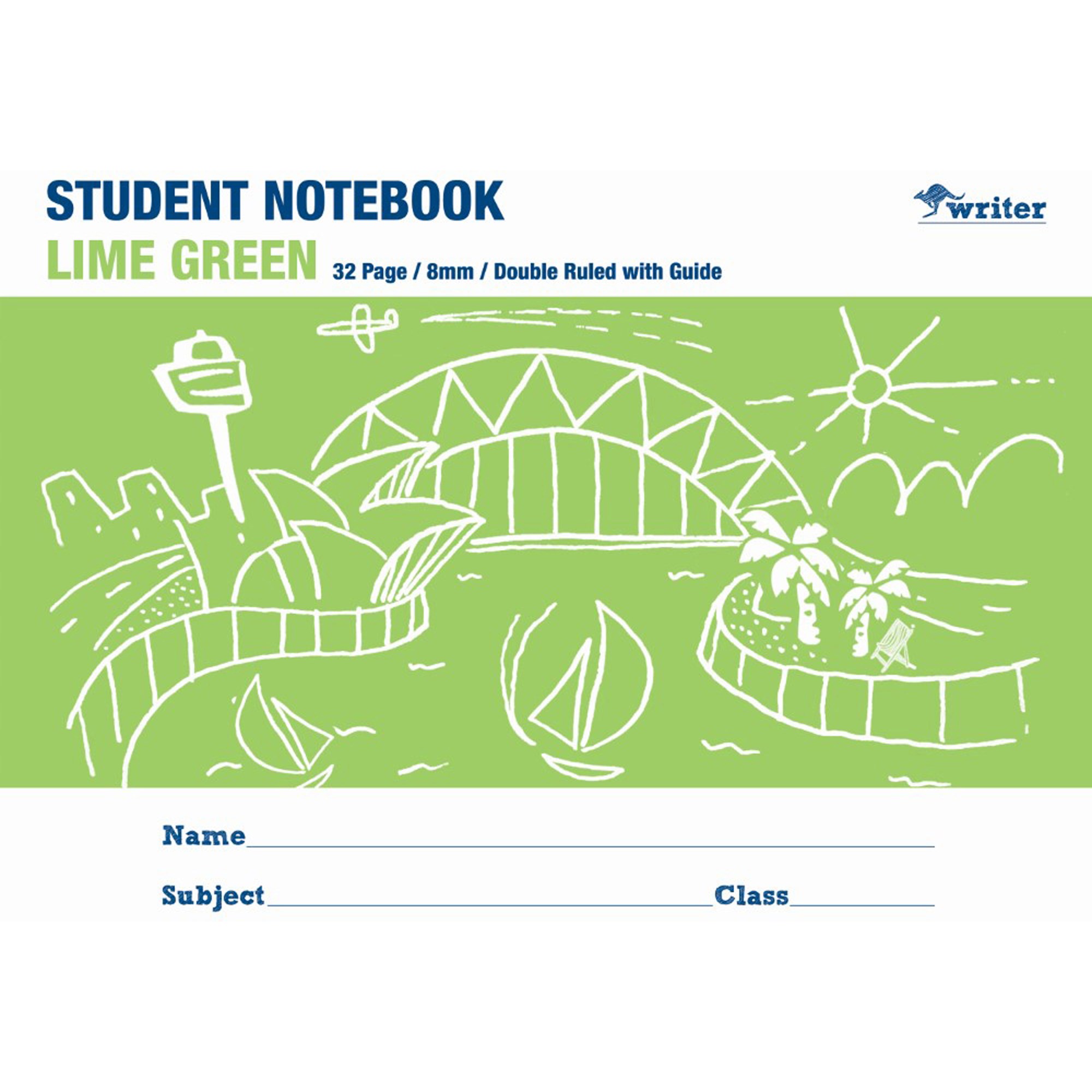 Writer Student Notebook 175x240mm 8mm Double Ruled 32 Pages Lime Green
