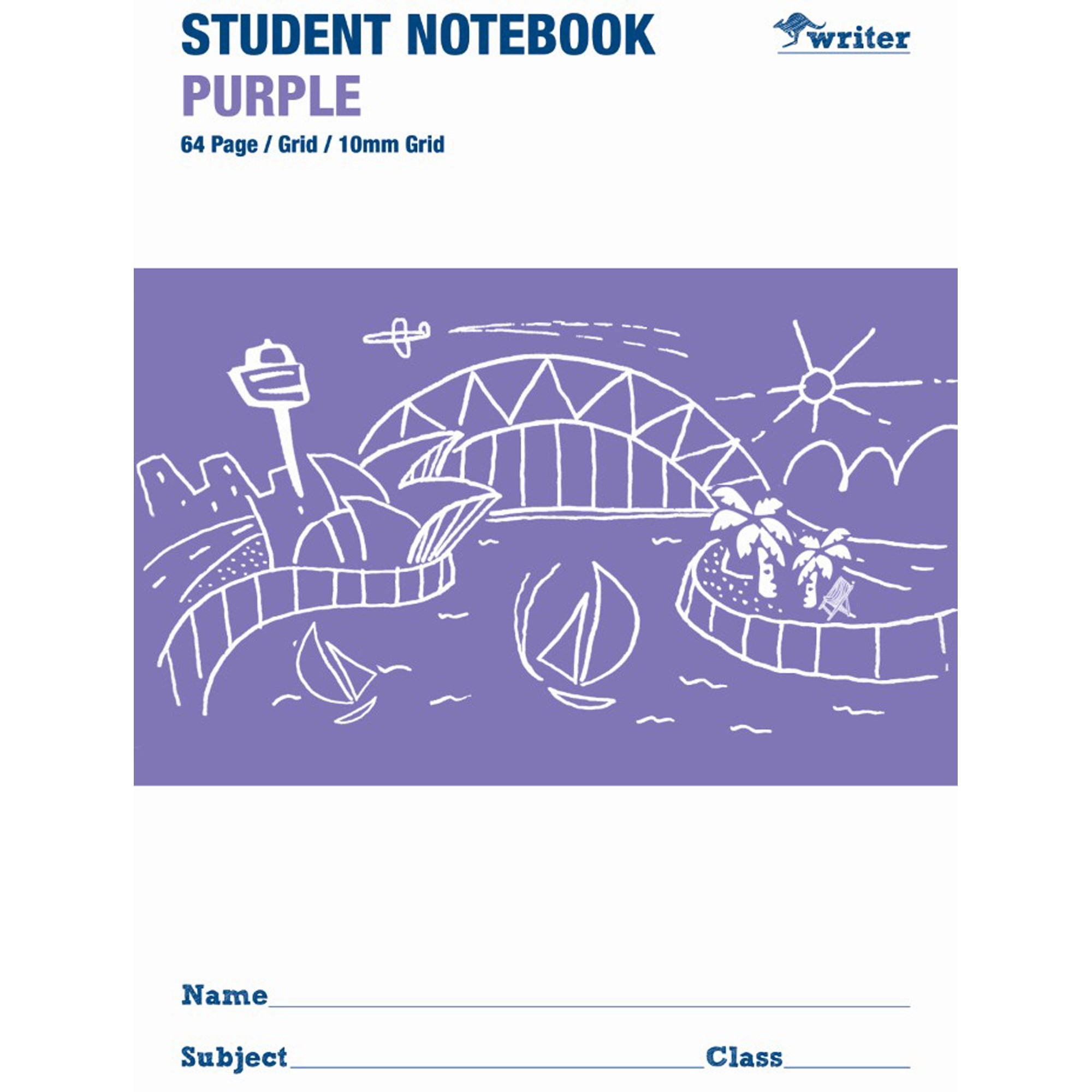 Writer Student Notebook 175x250mm 10mm Grid 64 Pages Purple