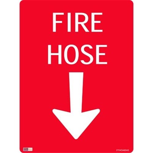 Zions Fire Sign Fire Hose with Arrow Down 450x600mm Polypropylene