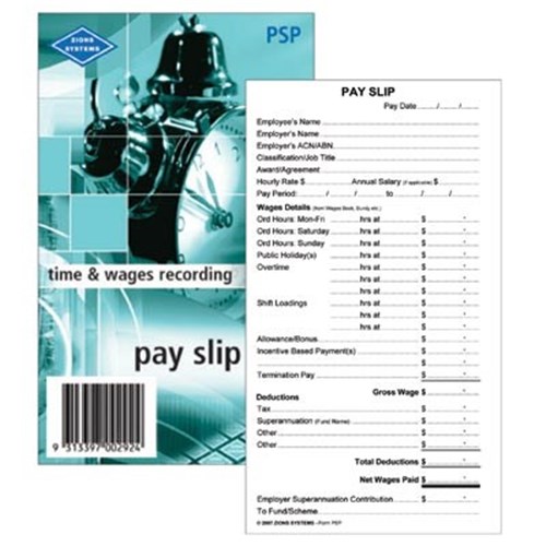 Zions Printed Pay Slip Pads 165x90mm 50 Leaf