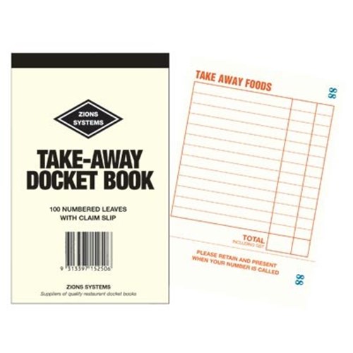 Zions TA Docket Book Restaurant Take Away 150x95mm