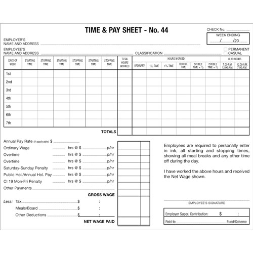 Zions Time And Pay Sheet Number 44 Hospitality Pack of 500