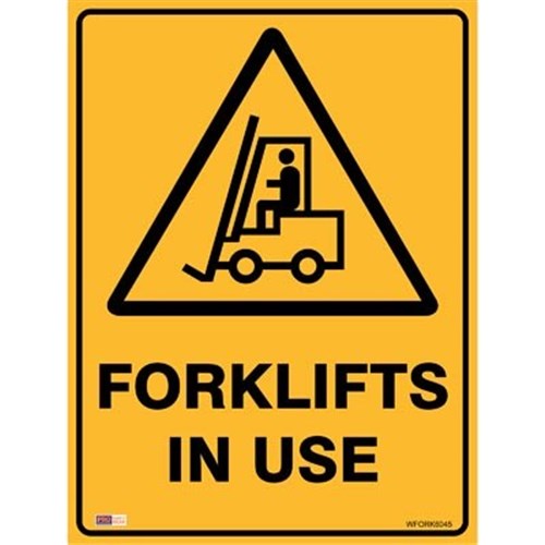 Zions Warning Sign Forklifts In Use 450x600mm Metal